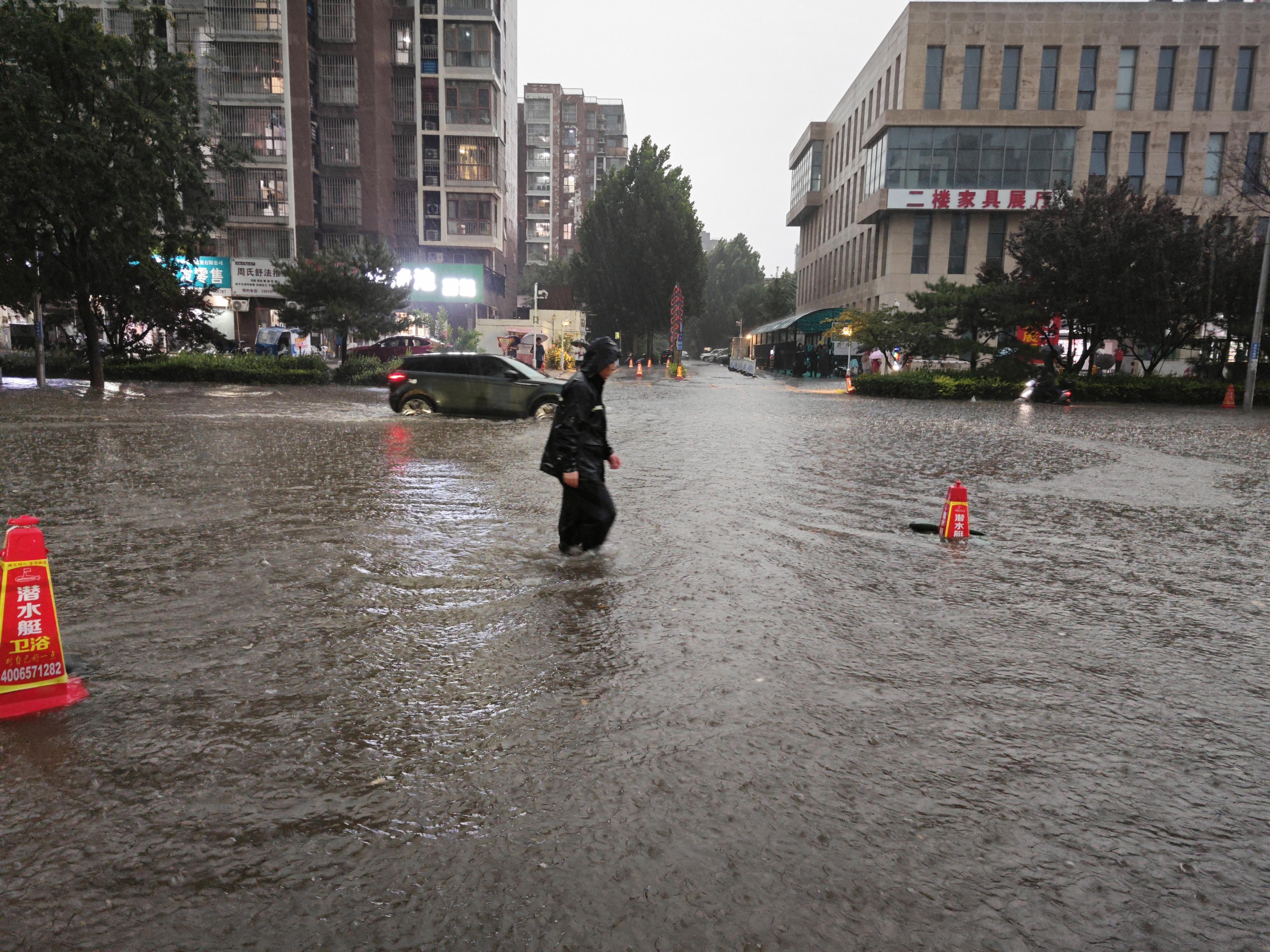 降雨50分钟后路面积水没过膝盖